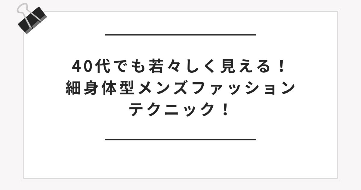 40代でも若々しく見える!細身体型メンズファッションテクニック!