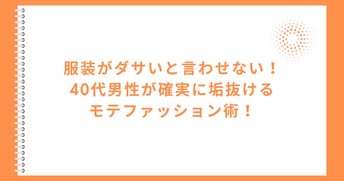 服装がダサいと言わせない!40代男性が確実に垢抜けるモテファッション術!